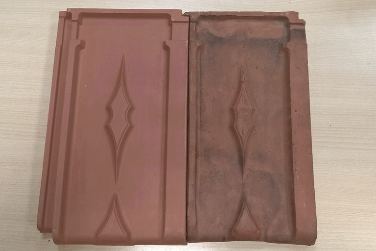 La constructora nos hizo llegar algunas muestras de estas tejas originales del Beti Jai, un modelo de teja mecánica fabricado en Valladolid, en una época en la que aun la teja plana no era muy común.