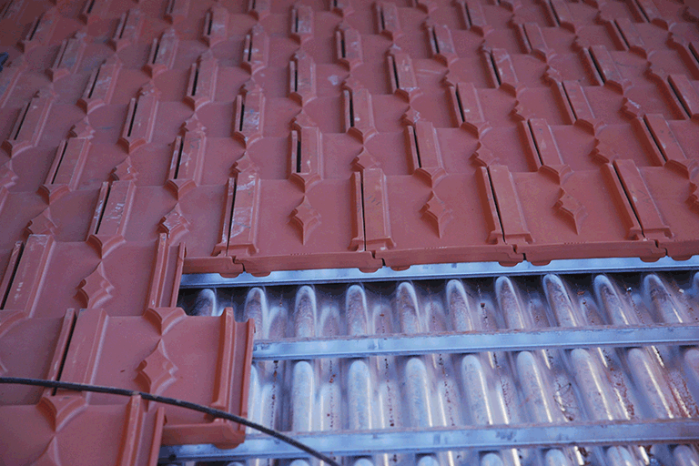 Tras la aceptación, se procedió a la fabricación industrial de las tejas que posteriormente se instalaron en las cubiertas del frontón Beti Jai, un formato especial y único, que solo se puede encontrar en este genial proyecto.